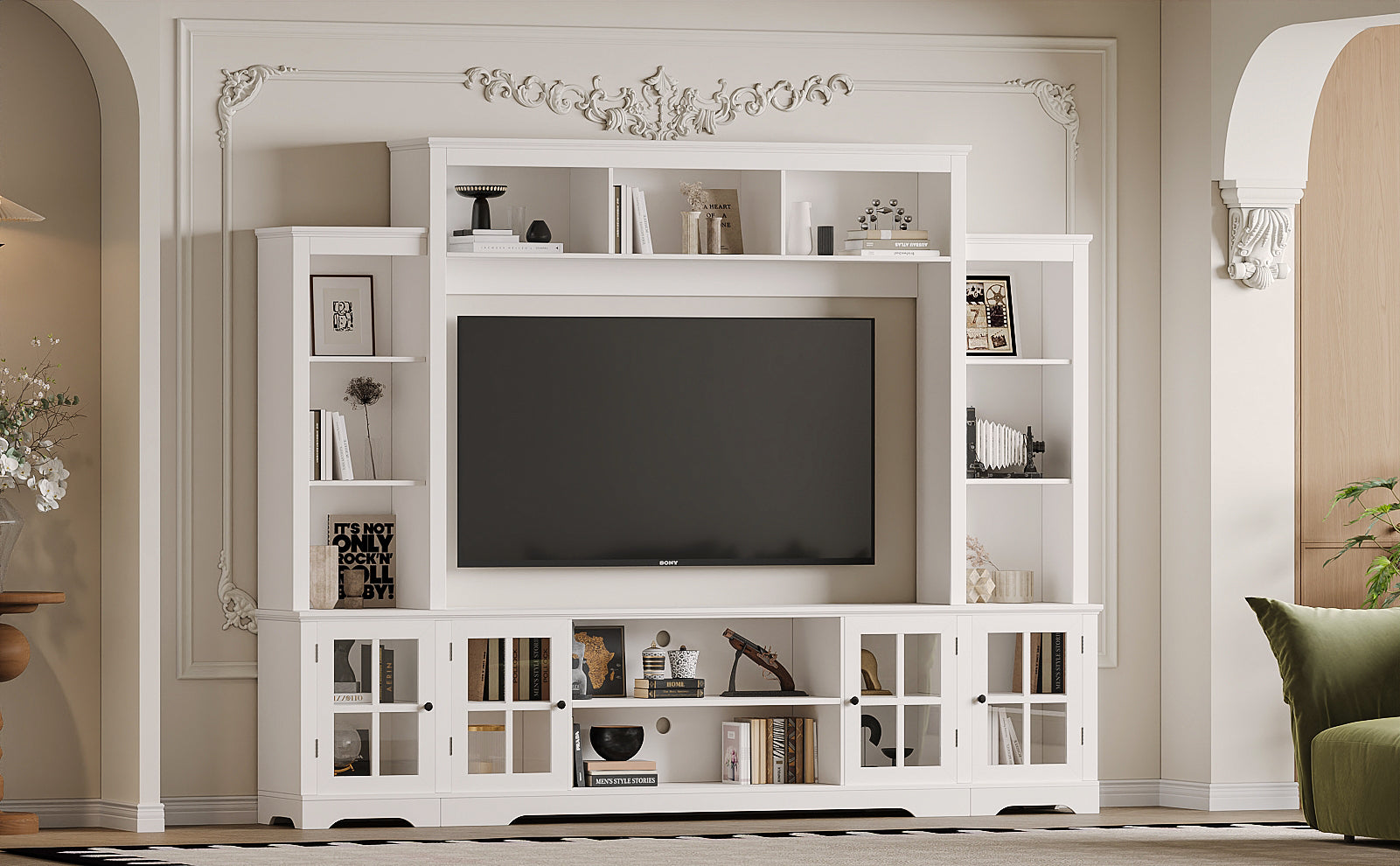 - Designed for 65-Inch Screens: The perfectly proportioned central alcove accommodates flat-screen TVs up to 65", providing a balanced and "built-in" look for your media setup.