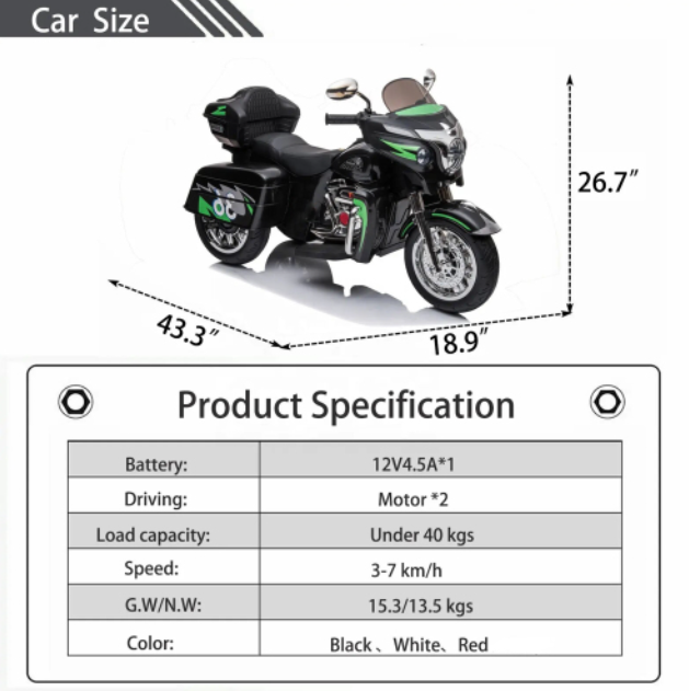 - Realistic Tech Dashboard: Includes bright LED headlights, built-in music, a horn, and an MP3/USB port so kids can listen to their favorite tunes while they ride.