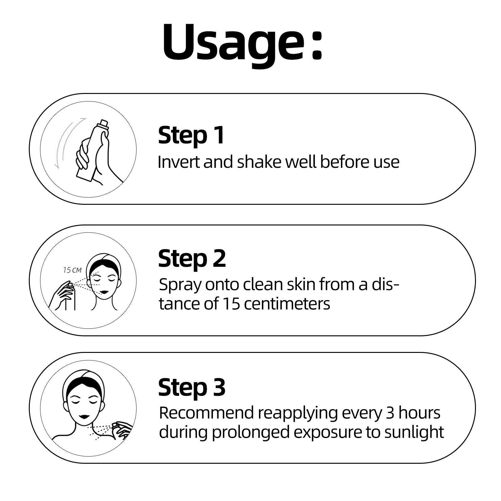 - Close your eyes and mouth, then spray evenly.