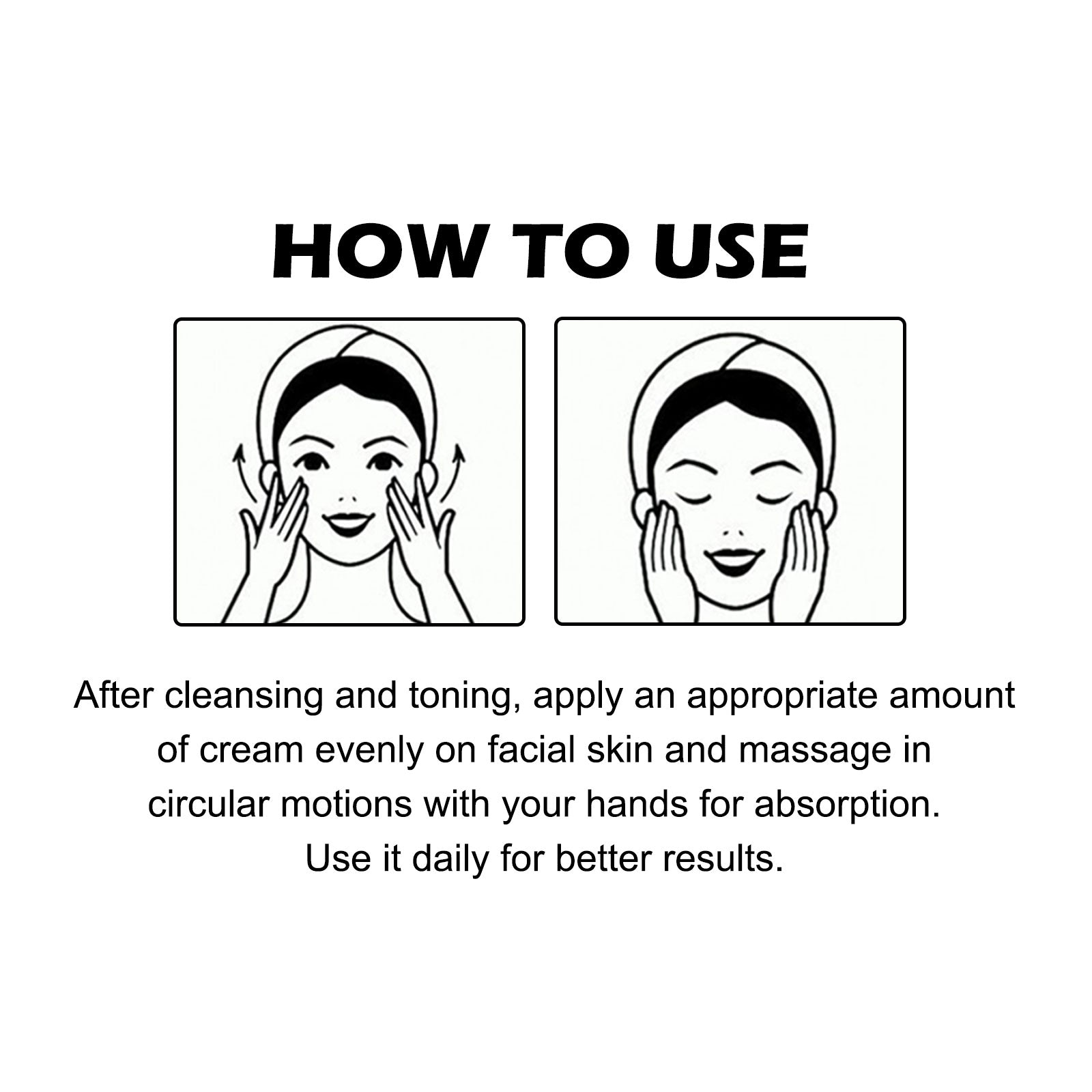 - Apply a small amount of the cream evenly across your face and neck.